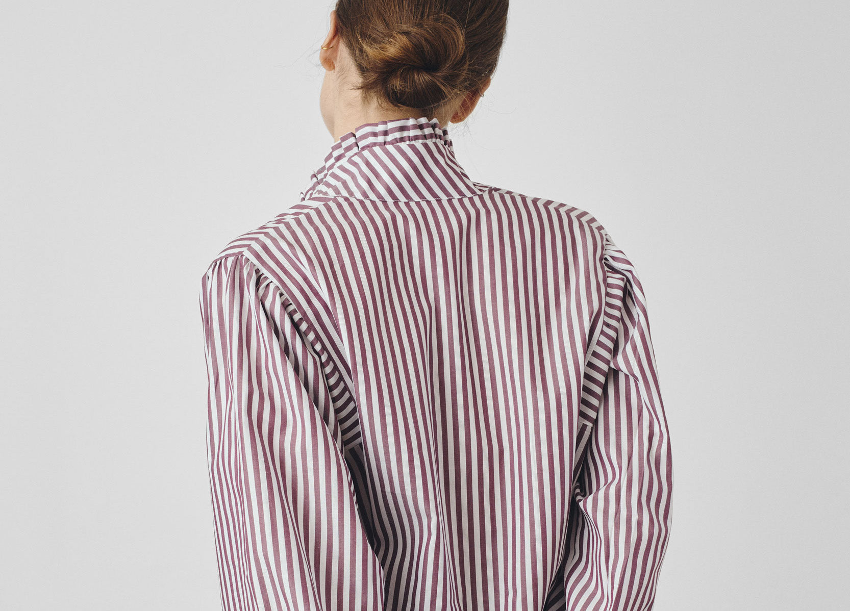 Chemise col montant à volants rayures bordeaux