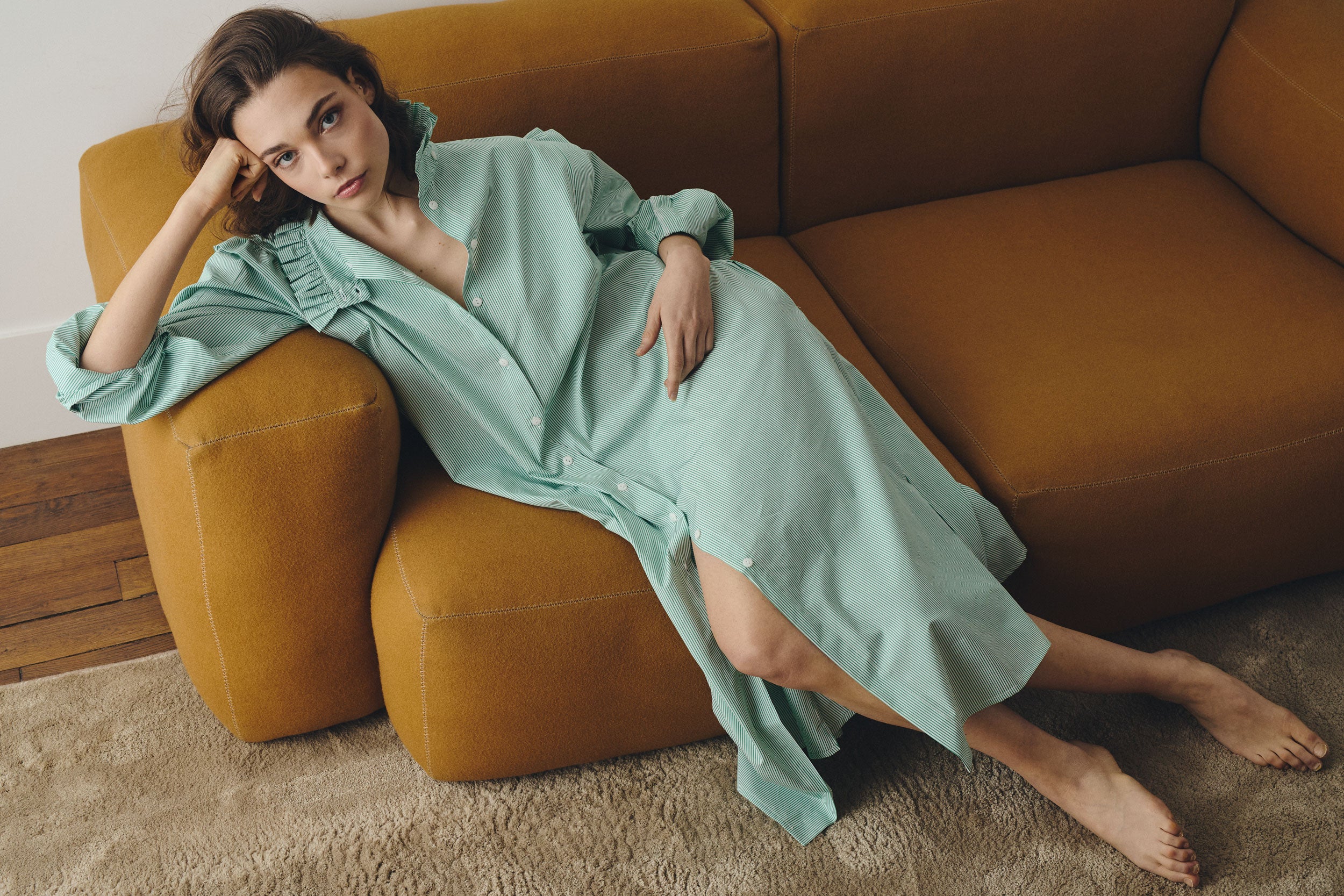 Robe chemise à rayures vertes